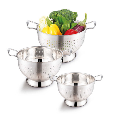 ホームキッチンステンレス钢キッチンColanderバスケット金属ストレーナースタンドと耳